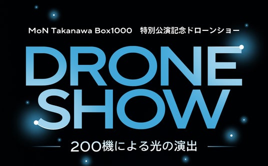 TAKANAWA GATEWAY CITYの文化創造・発信の拠点であるMoN Takanawaのシアター空間「BOX1000」での特別公演を記念し、200機のドローンがMoN Takanawaにエネルギーを吹き込むような光の演出を実施します。