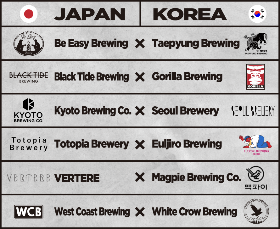 日本と韓国の人気ブルワリー12社が参加し、本イベント限定のコラボビールを販売します。