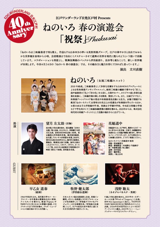 40周年イヤーの幕開けを飾る本公演を皮切りに、今後も江戸の文化と現代の感性が共鳴する多彩な公演を順次開催してまいります。