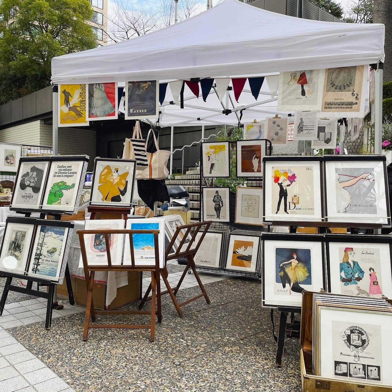また、店頭のテラス席では、日替わりで 3 組のディーラーによる「小さな蚤の市」を