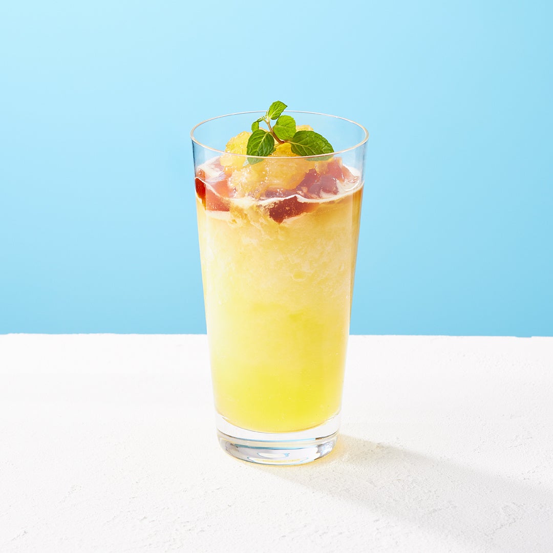 フローズン部分には、店舗仕込みのはちみつレモンのシロップとしらぬい果汁をベースに、柑橘の味わいを余すことなく閉じ込めました。ひと口目からしっかりと爽やかな柑橘の風味を感じていただけます。