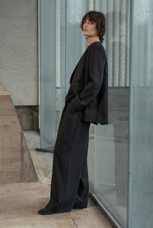 フォーマルメーカーならではの上質な素材と立体的なパターンによる着心地の良さにより、きちんと感とリラックス感を両立し、 “抜け感”のあるスタイルを楽しめます。