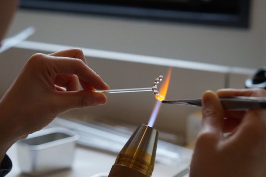 ※バーナーの炎でガラス棒やガラス管を熱し、成形する技術