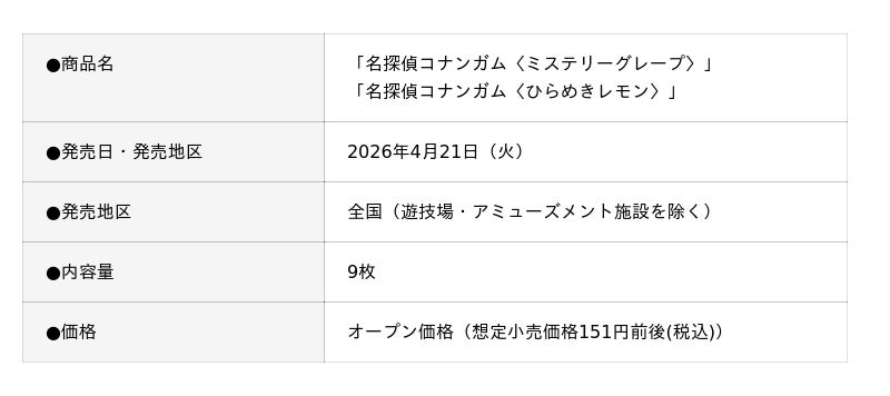 「名探偵コナンガム〈ミステリーグレープ〉」「名探偵コナンガム〈ひらめきレモン〉」を新発売します。
