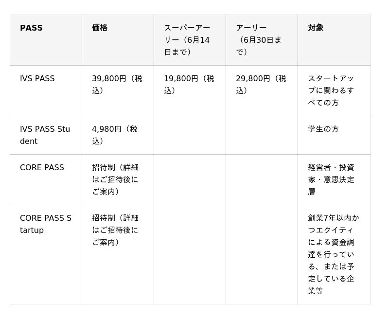 IVS PASSに関しては、6月14日までスーパーアーリー期間として定価39,800円(税込)のPASSを19,800円(税込)で提供します。また、6月15日から6月30日までをアーリー期間として、29,800円(税込)で提供します。