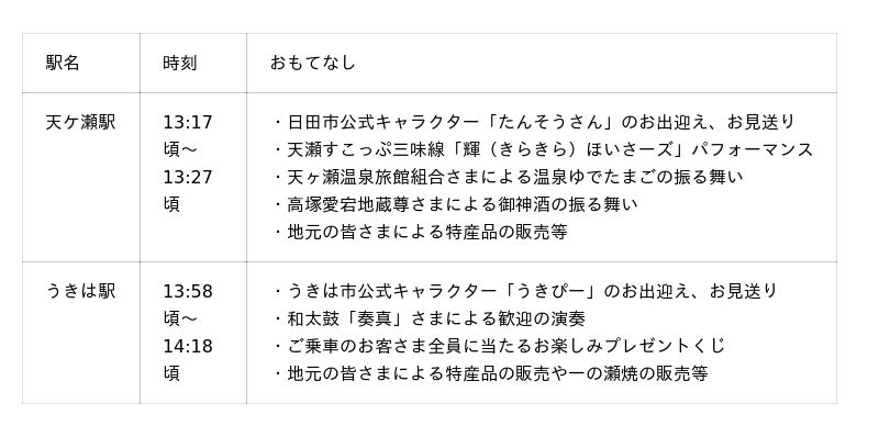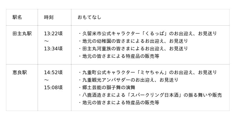 ※各駅でのおもてなしは運行状況により変更となる場合がございます。