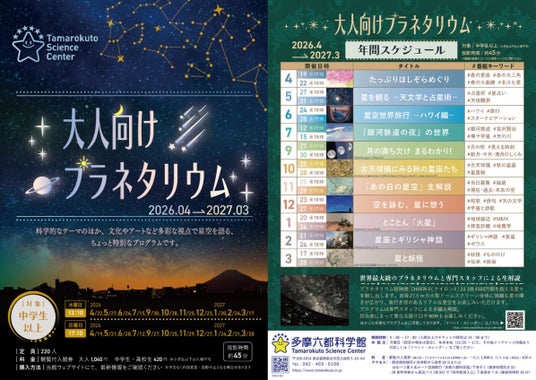 多摩六都科学館(東京都西東京市、館長:高柳雄一。以下、当館)では中学生以上を対象とした「大人向けプラネタリウム」を投影しています。