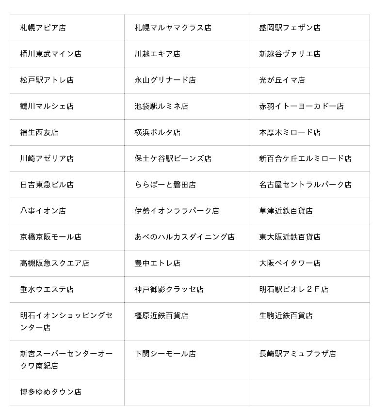 ◆キャンペーン開催店舗(都道府県順)