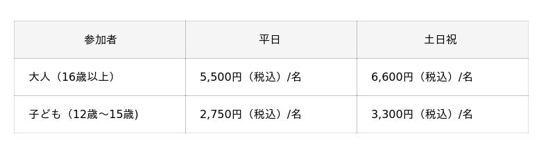 ※ 集合場所までの交通費は別途必要です。