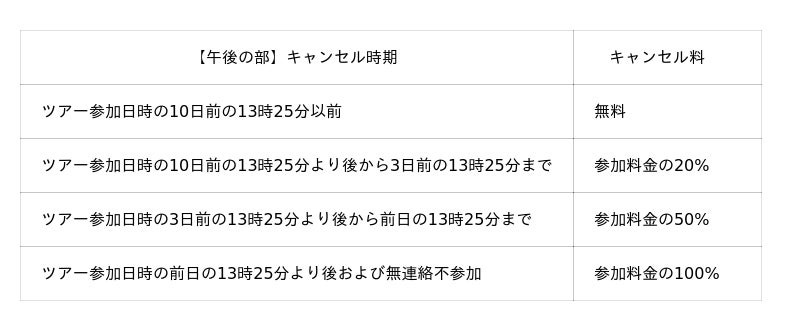 (ツアー中止の場合は、参加者の代表者へ事前に予約システムからご連絡差し上げます。)