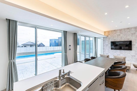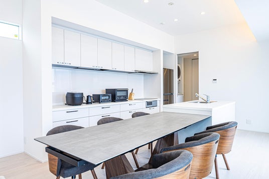 また、淡路島観光の拠点としてのカジュアルなご利用から、記念日や特別な日の演出を重視するご利用者まで、幅広いシーンに対応。キッチンにはBALMUDA製のトースター・オーブンレンジ・ケトルに加え、炊飯器やホットプレート、各種キッチンツールを完備。備え付けのワイングラスやシャンパングラスをプールサイドで傾け記念日を祝うなど、非日常を感じる贅沢なヴィラステイをお楽しみいただけます。