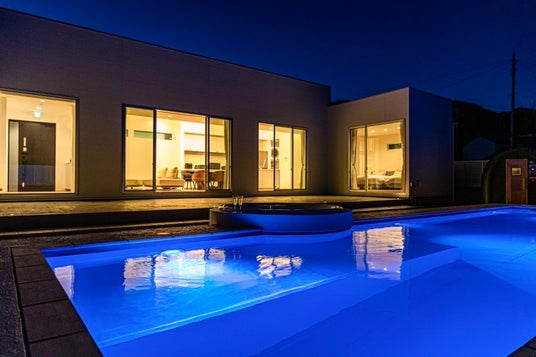 広々としたプライベートプールとジャグジーを備えた淡路島の一棟貸しヴィラ