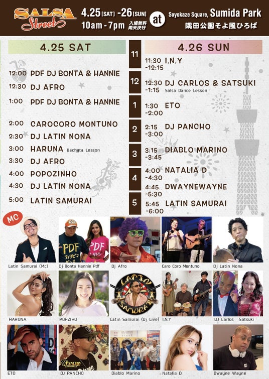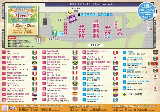 カリブ・ラテンアメリカストリート実行委員会(東京都目黒区 代表 森淳一郎)は、4月25日(土)及び26日(日)に隅田公園そよ風ひろば(東京都墨田区)にて開催する【サルサストリート2026 スミダ デ スダーダ】の詳細を発表いたします。