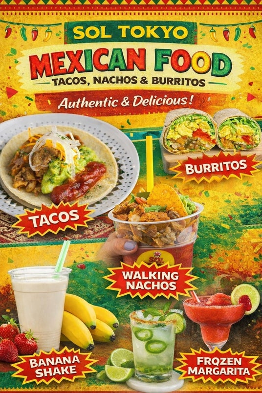 三ノ輪で、創業15年のSol Tokyo。本格メキシカンを気軽に楽しめる!タコス、ナチョス、ブリトーに爽やかなドリンクも充実。食べ歩きにぴったりのNachos Bomba ( Walking Nachos) 新感覚グルメをぜひ体験してください!