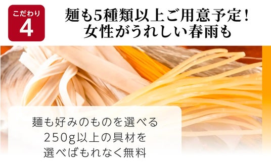 店内には、野菜・きのこ・肉・海鮮など60種類以上の具材を取り揃え、お客様自身で好きな食材を選び、好みの一杯をカスタマイズできます。