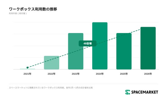 (※1)スペースマーケットに掲載されているワークボックス利用数、2021年1月~3月と2026年1月~3月の合計値比較データ。
