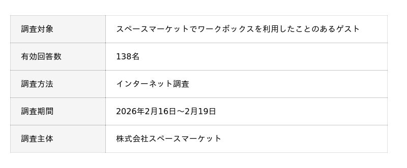スペースマーケットでワークボックスを利用したことのあるゲストを対象にワークボックスに関する調査を実施いたしました。