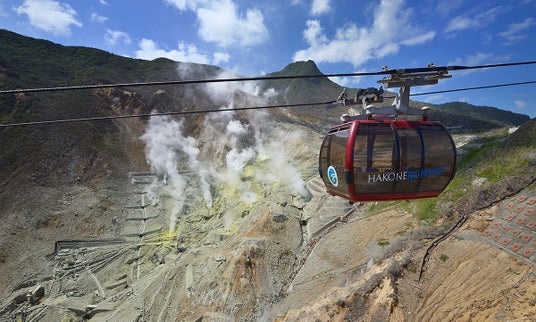 早雲山から大涌谷を経由して桃源台までの全長約4kmを結びます。早雲山~大涌谷間では、眼下に広がる大涌谷の谷底の景色が、桃源台方面へ向かう途中には富士山や芦ノ湖の景色が楽しめます。