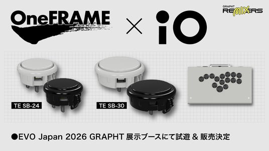 また、『iO』の拡張性を広げる取り組みとして、OneFRAMEの新型ボタンOneFRAME TE (Tournament Edition)SB-24・SB-30を装着した実機の試遊を実施するとともに、同ボタンの販売も予定しています。あわせて、ZENAIMのボタンを装着した『iO』の展示・試遊を実施し、ボタンモジュールキット「ZENAIM ARCADE CONTROLLER BUTTON MODULE KIT」の委託販売も行います。