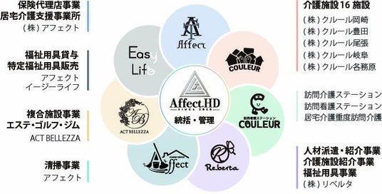 サービス付き高齢者向け住宅や住宅型有料老人ホームなど介護施設17施設をはじめとしてパーソナルジム、インドアゴルフ、エステなどを運営。 2011年岡崎市に(株)ビバントとして愛知県岡崎市に創業。介護施設を中心に店舗展開を続け、2024年複合施設ACT BELLEZZAをオープン。企業理念の「Happiness A Lot」をキーワードに事業展開を続ける。