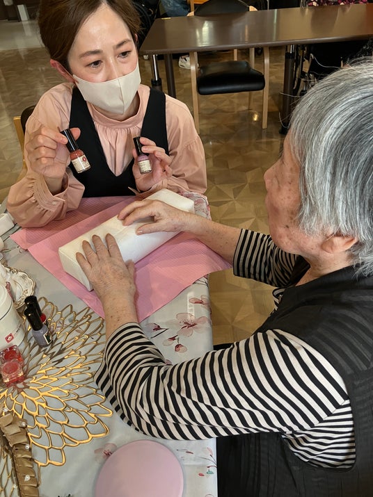 心身の健康・活力・癒しをお届けできる介護美容は、ご参加いただいた入居者様やご家族様にもお喜びいただいており、普段より生き生きとした表情で楽しんでいらっしゃいます。
