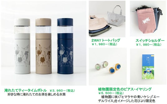 ショップでは、イベントのメインイメージをあしらったトートバッグや水筒、植物園限定色のピアスなど、行楽にぴったりなグッズを販売します。