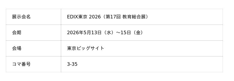 2026年5月13日(水)~15日(金)開催のEDIX東京にて初公開。当日はデモもご体験いただけます。