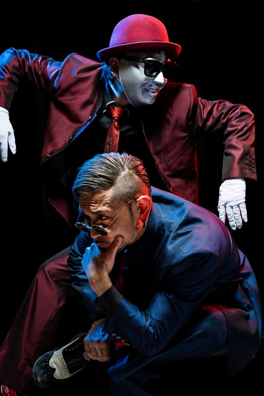 赤い衣装が駆け巡る「パントマイム演芸師」。