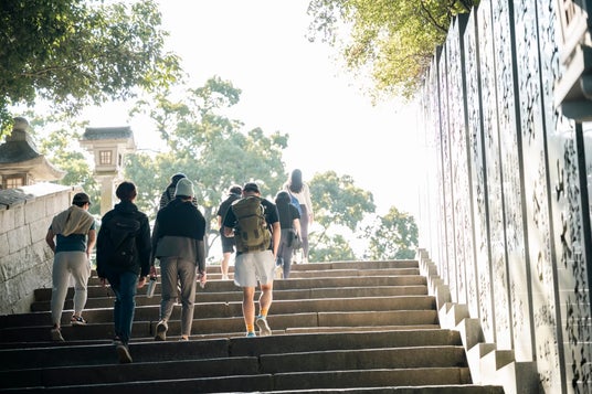 讃岐うどん打ち体験・HAKOBUNEビル見学(廃ビル再生プロジェクト)・旧金毘羅大芝居(金丸座)見学・地元プレイヤーとの交流会。観光スポットを「なぜそれが存在するのか」という視点で体験することで、翌朝の早朝参拝の見え方が変わります。