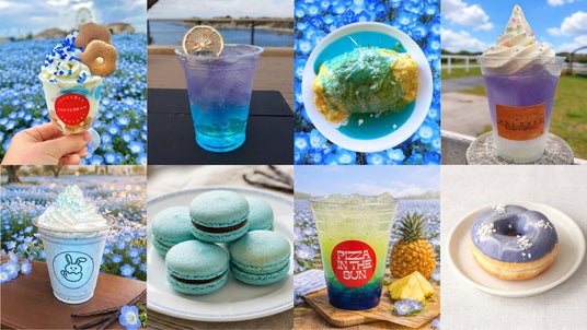 そして、ネモフィラの開花シーズンに合わせ、園内の飲食店8店舗にて、期間限定の「ネモフィラフード」を販売します。見た目にも華やかで、春らしさを感じていただける特別メニューとして、ネモフィラをイメージしたスイーツやグルメメニューをご用意しました。