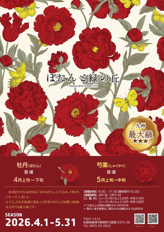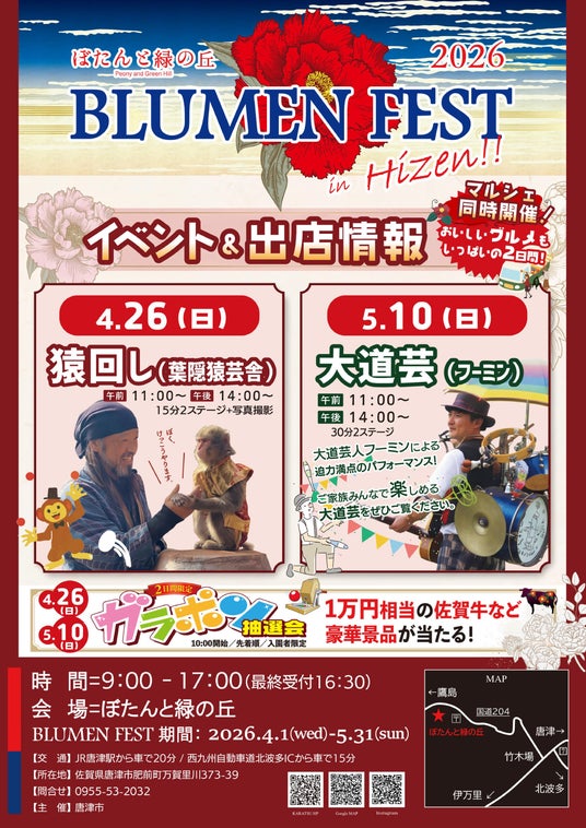 佐賀県唐津市のぼたんと緑の丘では、現在「ぼたんと緑の丘 BLUMEN FEST 2026」を開催中です。