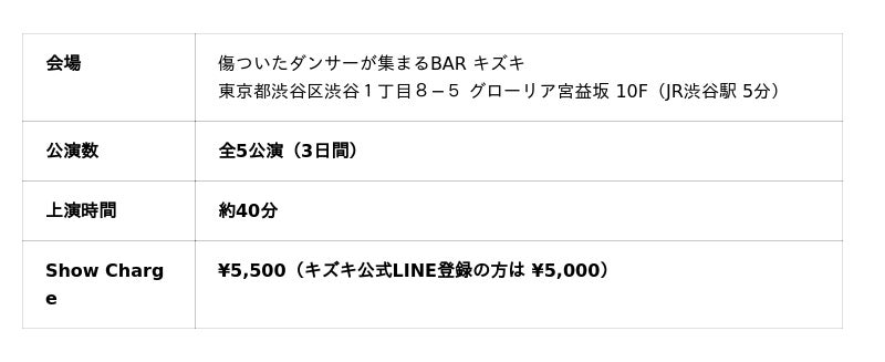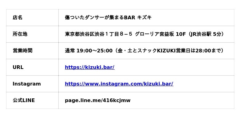 傷ついたダンサーが集まるBAR キズキ電話:03-6434-1309