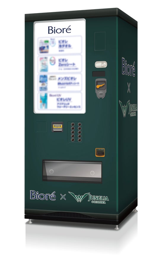 園内3か所に「ビオレ自動販売機」を2026年4月28日(火)から順次設置し、「ビオレ 冷タオル」「ビオレ UV アクアリッチ ウォータリーエッセンス」「ビオレZeroシート」「メンズビオレ 顔もふけるボディシート」などを販売します。