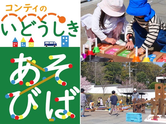 コンティの移動式あそび場 in れきぶん竹けん玉、竹とんぼ、トイレットペーパーロケット、5連けん玉など、楽しいおもちゃで遊べます。