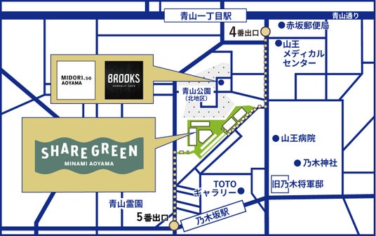 ※近隣店舗:MIDORI.so AOYAMA、BROOKS GREENLIT CAFE