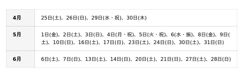 臨時開園日 5月5日(火)
