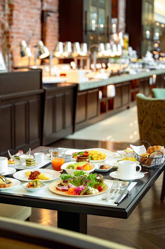 翌朝には、駅舎の真ん中に位置するゲストラウンジ アトリウムにてこだわりの朝食をご堪能ください。客室のVOD(テレビ画面上のご案内)にて混雑具合をご確認いただけます。