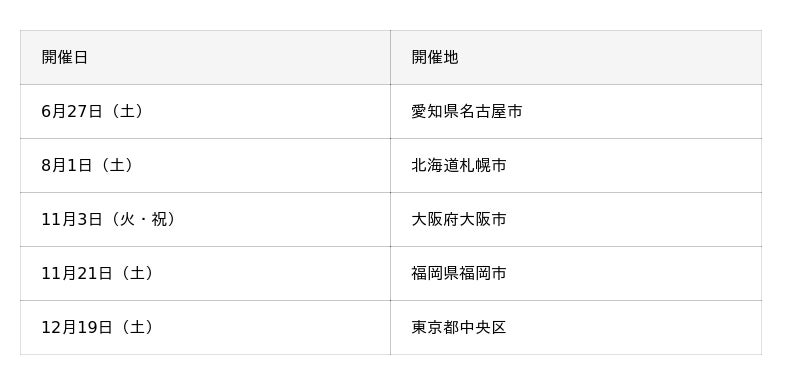 (注)開催スケジュールは予定であり、事前の予告なく変更、追加になる可能性があります。