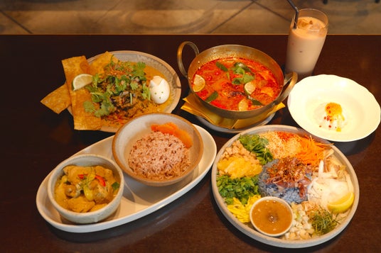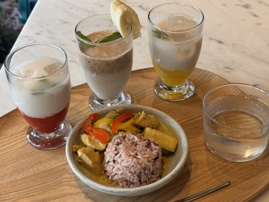 グリーンカレー・カオヤム・カオソーイ・トムヤムクン・アーモンドミルクのババロア・アーモンドミルクを使ったミルクティーを展開。