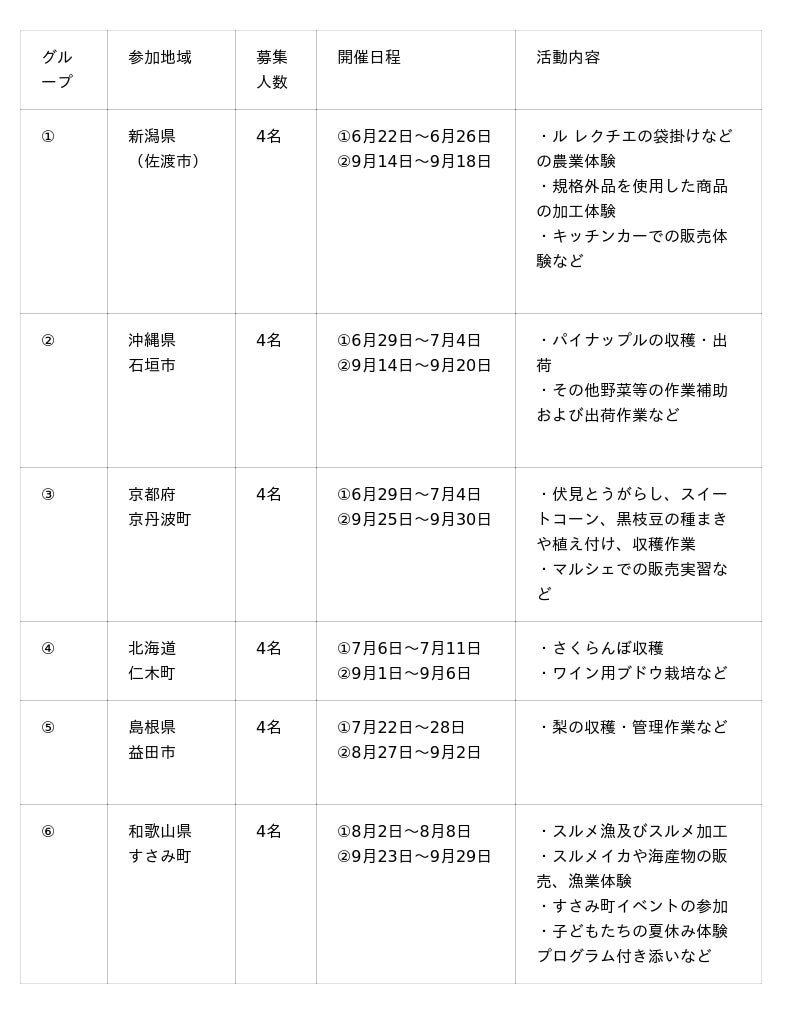 本プログラムを通じ、地方の未収穫作物におけるフードロス削減と、次世代を担う学生による地方創生の支援を加速させてまいります。