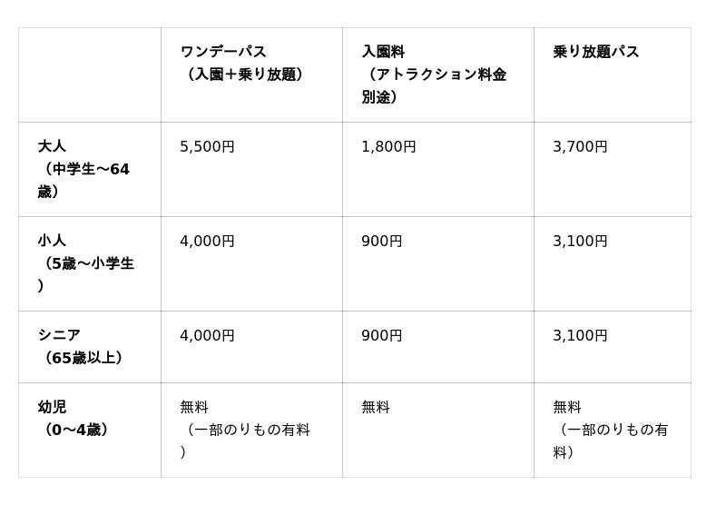 ●未就学児:無料 ※入園特典はつきません