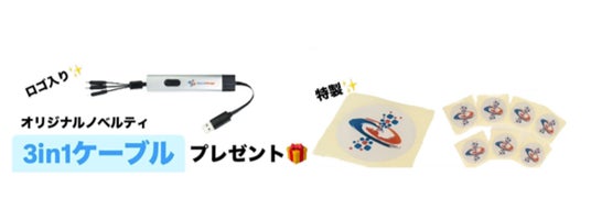 また、当日ブースにお越しいただいた方限定で、オリジナルノベルティ「3in1ケーブル」または「オリジナルステッカー」をプレゼントいたします。ぜひお気軽にお立ち寄りください。