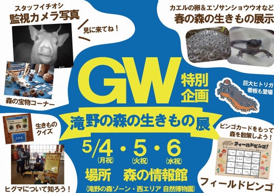 自然豊かな滝野の森でみられる生きものたちを展示や監視カメラの写真などでご紹介します!