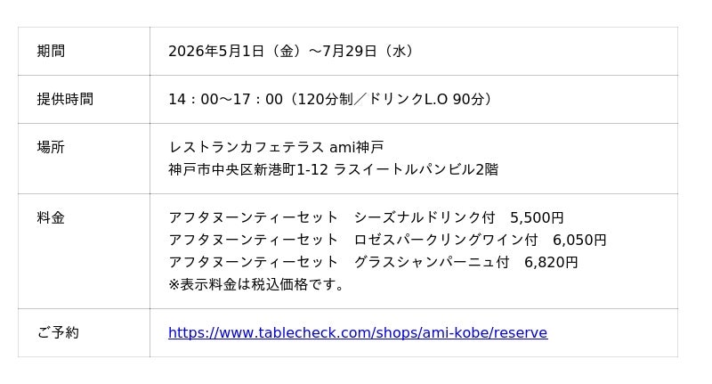 ◆お客様のお問合せ先:レストランカフェテラス ami神戸 078-391-5050(直通)