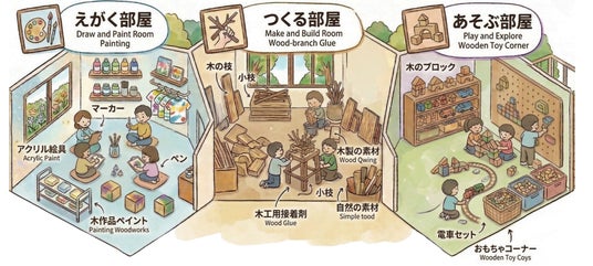【虹のアトリエ(イメージ)】フロントで木材キットなどをご購入いただき、自由にペイントや工作をしていただきます。
