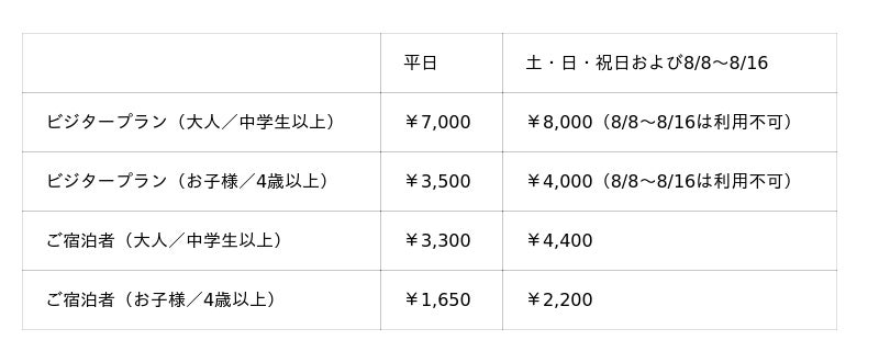 ※8月8日~8月16日は宿泊者のみ利用可能です。