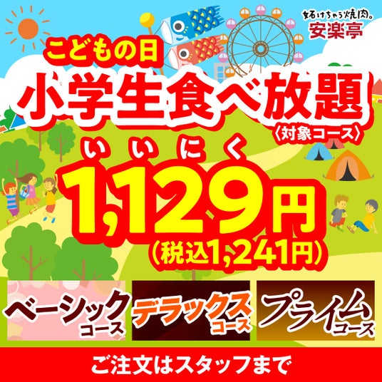 3.「こどもの日」の家族の思い出づくりを応援します!小学生のお子さまが “いいにく(1129)”価格 で食べ放題を楽しめます。