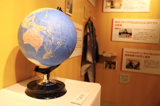 「年表ゾーン」では、2016年からこれまでの各年の代表的な出来事や、動画、イベントで使用した小物を展示しています。QuizKnockがスタートした2016年のゾーンでは、10月1日、QuizKnockの誕生前夜に撮影された奇跡の1枚が展示されているとか…?! そのほかにも普段の様子がわかる貴重なオフショットが盛りだくさん。また、初期に使用していた伊沢の私物である早押しボタンや、銀の盾、金の盾、偉人麻雀牌など、動画やイベントに登場したたくさんの小物も展示されています。