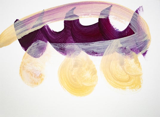 鮮やかな色彩による流れるようなストロークと、大胆な余白が印象的な松田のペインティングですが、モティーフ・点・線・面に対する眼差しは、年を経るごとに大きく変化してきました。