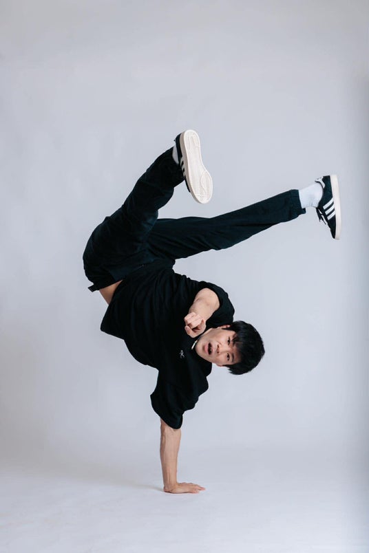 片手逆立ちで跳ねるブレイクダンスの技「ワンハンドラビット」の回数で139回(肘188回)の世界ギネス記録保持者のブレイクダンサー(非公式最高記録は198回 / 肘210回)
